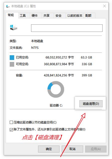 步骤2:在弹出的属性窗口中,点击“磁盘清理”按钮。