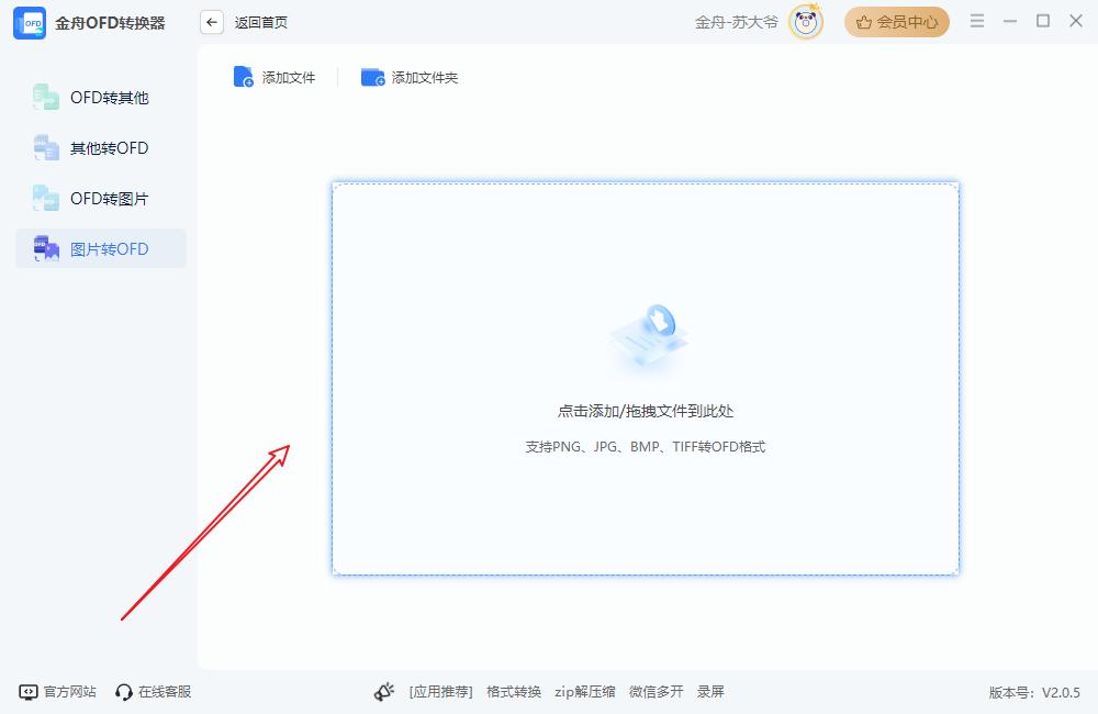 步骤1.双击运行金舟OFD转换器,点击页面的【图片转OFD】功能。