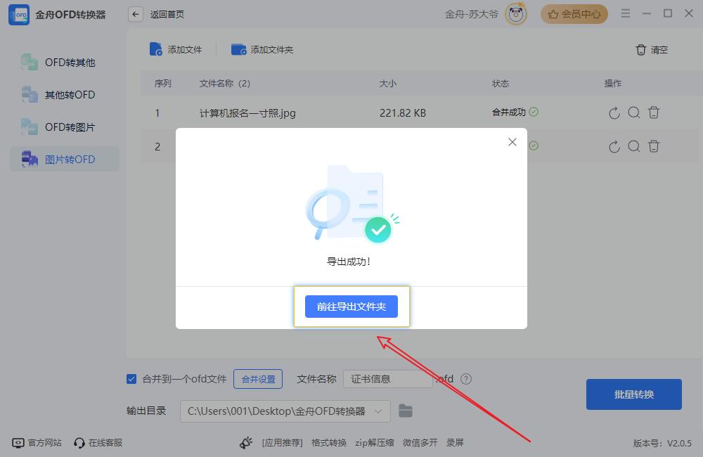 步骤5、转换完成,点击弹出提示窗口的【前往导出文件夹】即可查看文件。
