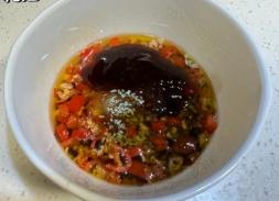 4.调料汁的各种调料比例,可以根据个人的口味去调整,喜欢酸甜口的,可以适当多增加白糖和醋的用量。喜欢辣味的,可以多加一些辣椒油。