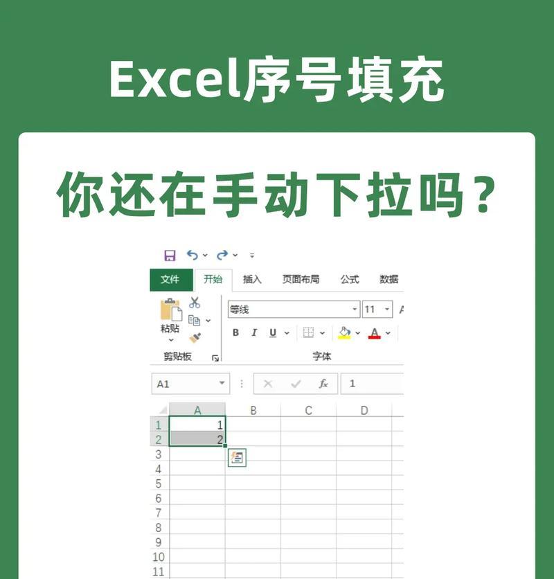 在Excel中,我们可以通过填写两个数字,来生成一个数字序列。比如,在A1单元格中填写1,A2单元格中填写2,然后选中这两个单元格,拖动右下角的小黑点,即可快速生成数字序列。