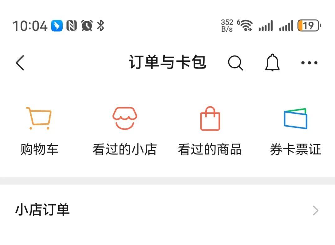新版本中的订单与卡包的内容更丰富一点,包含小店的订单、购物车、商品足迹、券卡票证等内容。