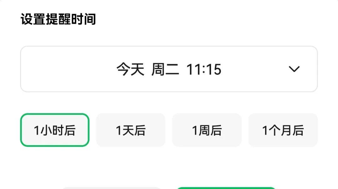 在微信8.0.64安卓内测版中,微信官方对这个功能进行了升级,新增了快捷设置的功能,可以快速地选择1小时、1天、1周和1个月的提醒周期,操作更加方便。