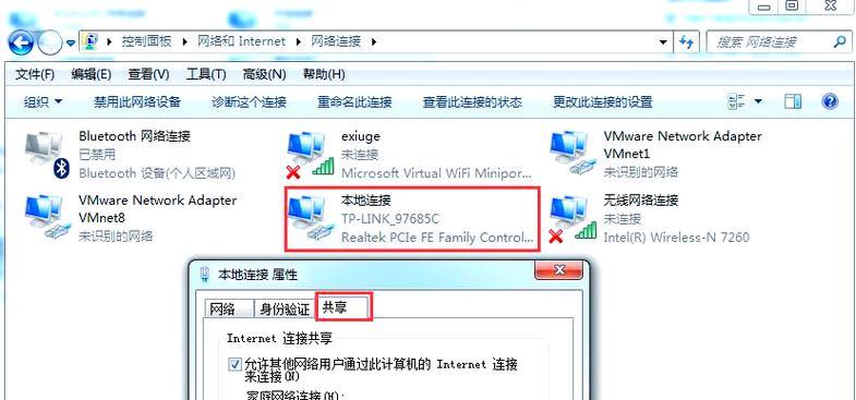 在控制面板中找到“网络和共享中心”,然后选择“更改适配器设置”。在这里,找到你的无线网卡并右键选择“属性”,然后切换到“共享”选项卡,勾选“允许其他网络用户通过此计算机的Internet连接来连接”,保存即可。