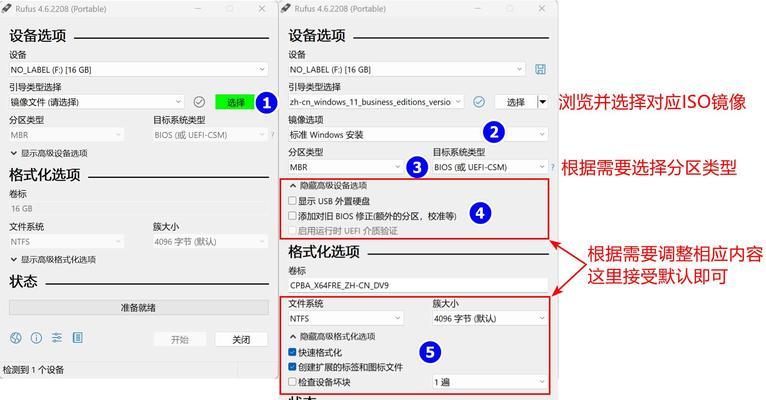 将U盘插入电脑,并打开制作工具。选择U盘、选择系统镜像文件、设置启动选项,然后开始制作启动U盘。