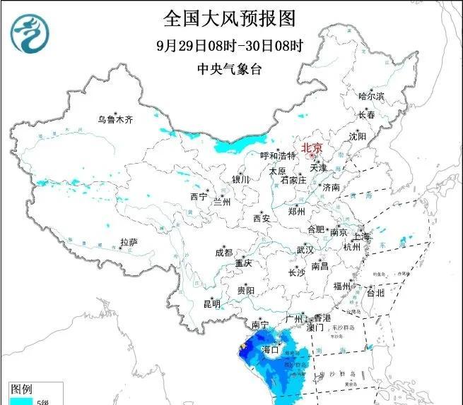 新疆北疆、甘肃北部、广西南部、广东西南部沿岸5~7级