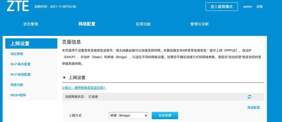 1.选择互联网连接类型:在路由器管理界面中选择适合您的互联网连接类型(通常是PPPoE、动态IP或静态IP)。