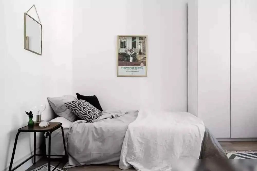 最后一点就是将卧室中的床铺紧挨着卫生间的墙壁,这一点更多的是为了卫生理念。