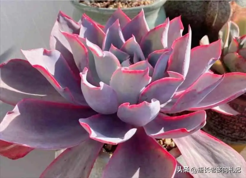 说起多肉“薄叶三仙”晚霞、广寒宫和蓝光,我觉得最不好养的是广寒宫,而最难养到很满意的则是晚霞。为什么我会这样说呢?那是因为广寒宫养成老桩之后茎秆老是容易出问题,而晚霞作为“薄叶系”跟紫色系的多肉虽说上色很轻松,同时在露养状态还能做到全年颜值在线,但它的叶片不规整,如果养护环境的光照不是特别好的话,那它就很容易长成张牙舞爪的模样,一点都不好看(广寒宫和蓝光则基本没有这种烦恼)。