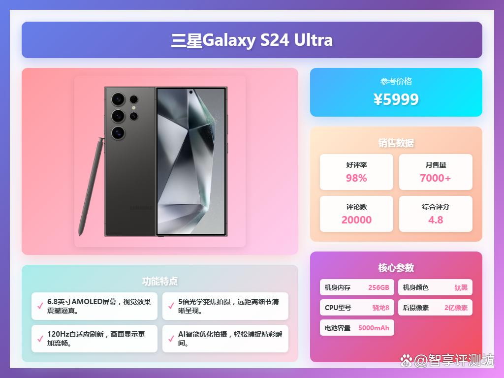 热销款:三星Galaxy S24 Ultra (京东参考价:5999)