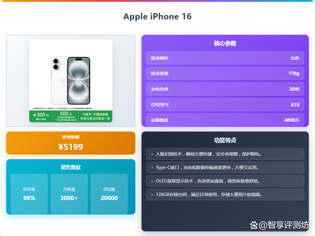 热销款:Apple iPhone 16 (京东参考价:5199)
