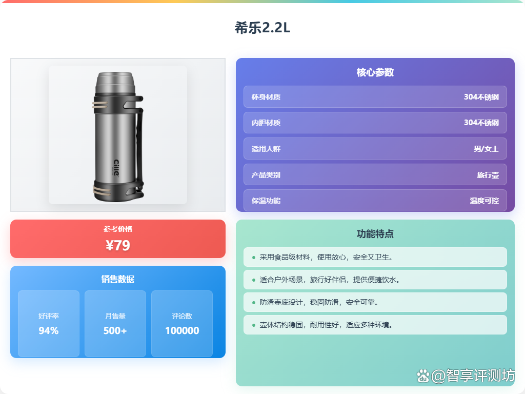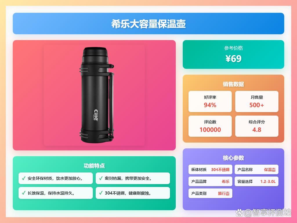 总而言之,希乐真空水壶作为老牌子,在质量和口碑上还是有保障的。至于具体选哪款,就看你自己的需求和预算啦!希望这篇文章能给你提供一些参考,祝你早日选到心仪的保温壶!