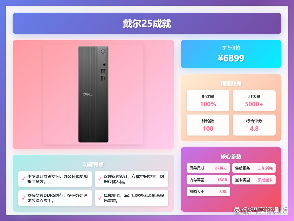 写在最后: 戴尔和神舟,就像电脑界的“肯德基”和“沙县小吃”,一个品牌响亮,一个经济实惠,选哪个还真得好好琢磨。戴尔作为老牌厂商,品质和售后服务更有保障,适合追求稳定、省心,并且预算较为充足的朋友。如果你是职场人士,对电脑的耐用性和售后有较高要求,戴尔会是更稳妥的选择,毕竟关键时刻掉链子可不行。但如果你是学生党或者预算有限,又想体验不错的性能,那神舟绝对是性价比之选。神舟的电脑主机在同等价位下,配置往往更高,能满足你玩游戏、看电影、处理学习任务的需求。当然,神舟在品控和售后方面可能稍逊一筹,需要你多加留意。 最终选择哪款,关键还是看你的实际需求和预算。是更看重品牌和稳定性,还是更追求性价比和性能? 仔细对比两者的优缺点,结合自己的实际情况,才能选到最适合自己的电脑主机。看看上面推荐的型号,相信总有一款能满足你的需求!