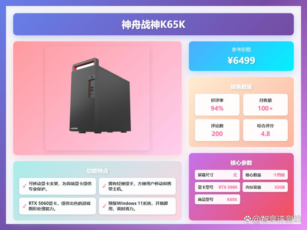 价格方面,神舟的优势就体现出来了。就拿文中的配置来看,同等价位下,神舟往往能给到更高的配置。比如,神舟战神K65K,i5-14600KF+RTX 5060的配置,价格在6499左右,而戴尔同价位的机器,配置可能就要略逊一筹。如果你对性能有较高要求,又不想花太多钱,神舟的性价比优势还是很明显的。 当然,也不能光看价格,还要结合自身需求来考虑。