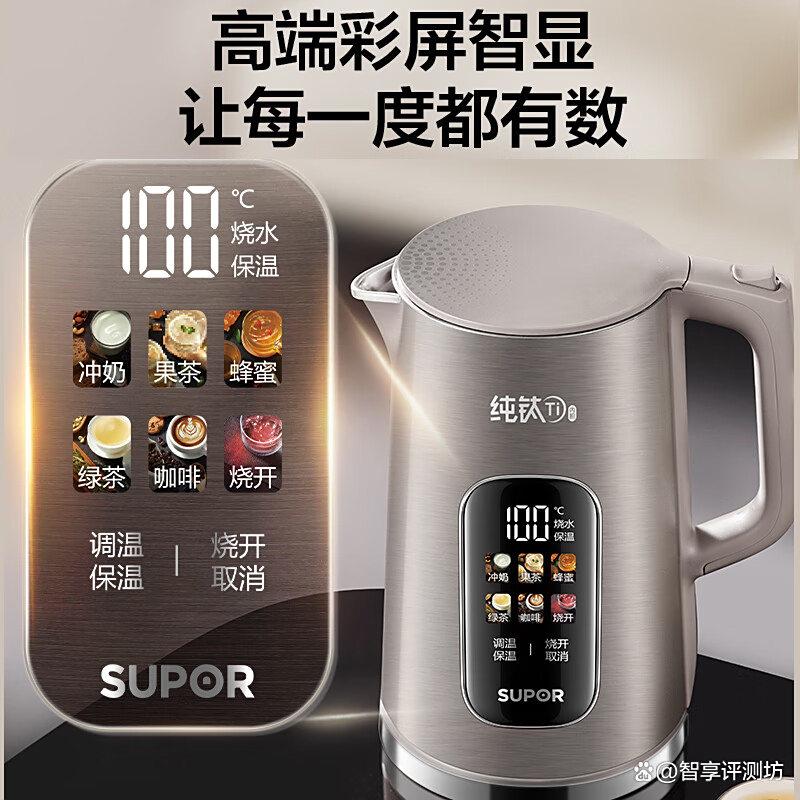 苏泊尔这款电热水壶,内胆居然用的是4.0纯钛,厉害了!0涂层设计,用起来更放心,而且这种材质耐腐蚀性强,用在婴儿用品和医疗领域的,健康无害这点必须点赞。