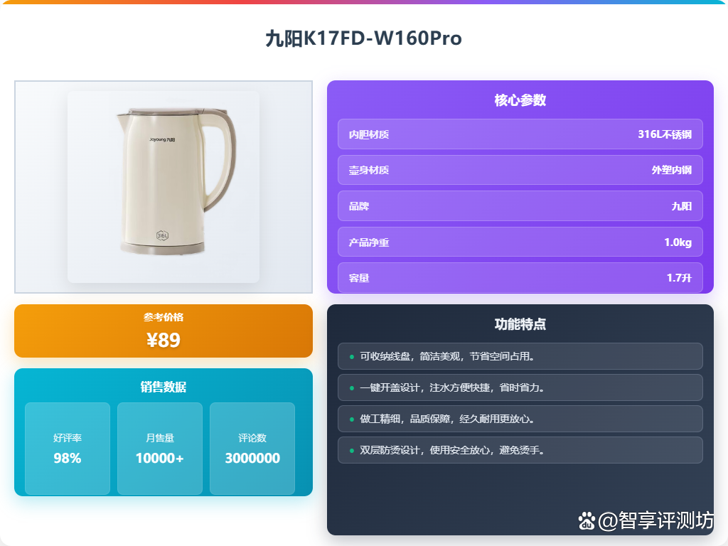 热销款:九阳K17FD-W160Pro (京东参考价:89)
