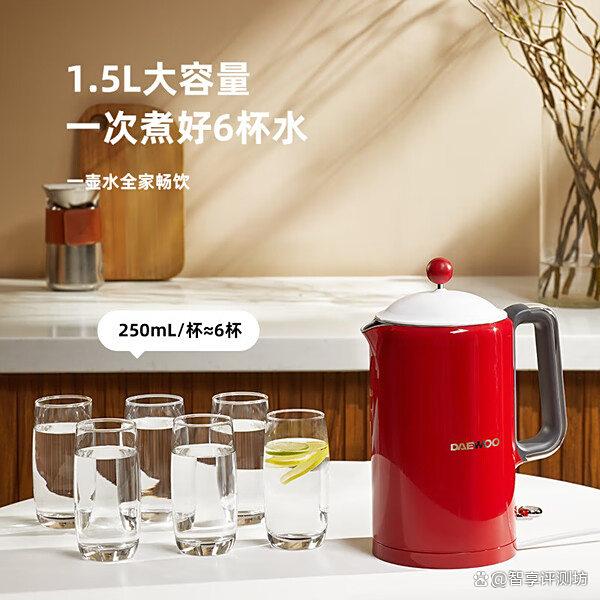 大宇这款电热水壶,不得不说,颜值是真的高!复古设计加上多种颜色可选,摆在家里也是一道风景线。而且壶盖和壶身是分离的,加水、清洗啥的都特别方便,细节设计很用心。